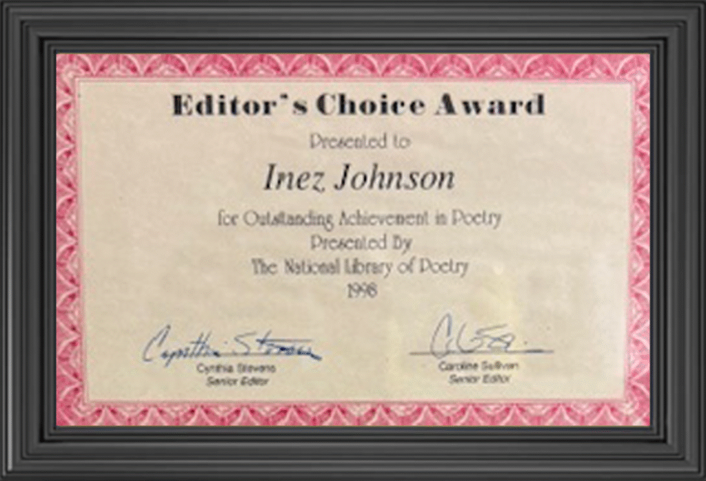 In Addition, She Won “Editor’s Choice Award” From the National Library of Poetry for Her Poem “Strive To Be Best” In “1998”. What A Great Accomplishment!